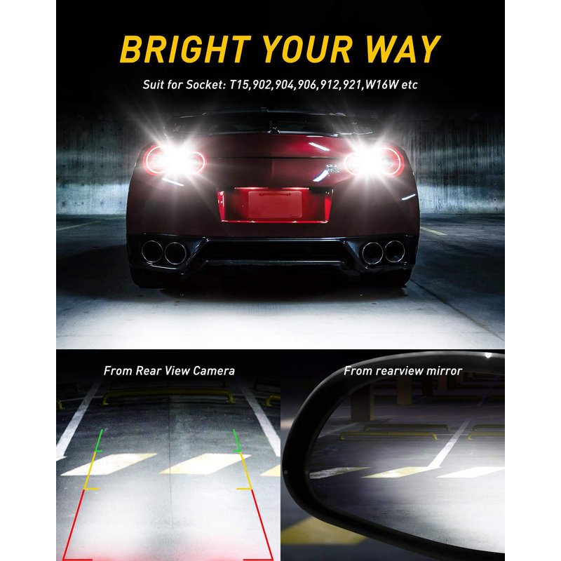 - Plug and play design, suit for socket: T15, 912, 921, 906, 904, 902, W16W, etc, used for backup reverse lights only, ideal for customers who are looking for a super bright white led reverse light bulb