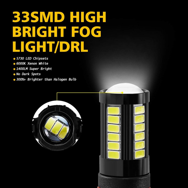AUXLIGHT 2504 PSX24W 12276 LED Fog Light Bulbs 6000K Xenon White, Super Bright 2800 Lumens 33-SMD Chips LED Daytime Running Lights DRL Bulbs Replacement for Cars, Trucks (Pack of 2)