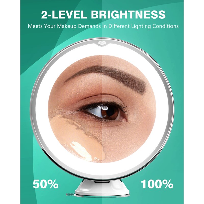 - 𝟐-𝐋𝐄𝐕𝐄𝐋 𝗕𝗥𝗜𝗚𝗛𝗧𝗡𝗘𝗦𝗦 - With 2-level adjustable brightness settings, this magnifying mirror with light offers customizable illumination for any environment or time of day, enhancing the user's experience; Powered by 3 AAA batteries, not included