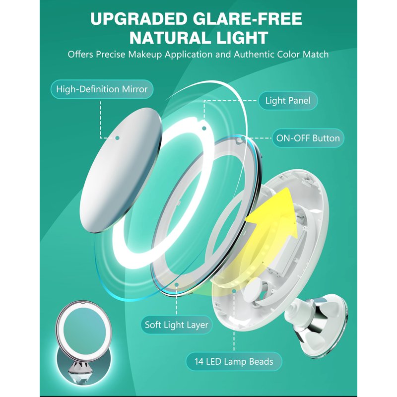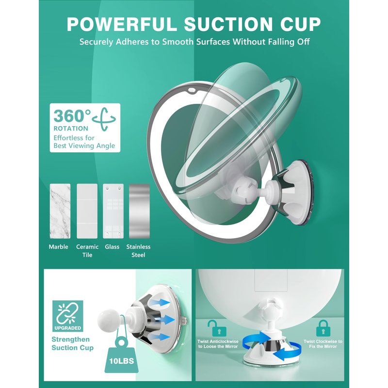 - 𝗦𝗧𝗥𝗢𝗡𝗚 𝗦𝗨𝗖𝗧𝗜𝗢𝗡 𝗖𝗨𝗣 & 𝟯𝟲𝟬° 𝗥𝗢𝗧𝗔𝗧𝗜𝗢𝗡 - The 20X magnifying makeup mirror features a strong suction cup that adheres to virtually any smooth, clean, flat surface like glass, ceramic, porcelain, enamel, acrylic, fiberglass, or polished marble; It has a 360° rotation capability, ensuring versatile and convenient positioning for optimal use