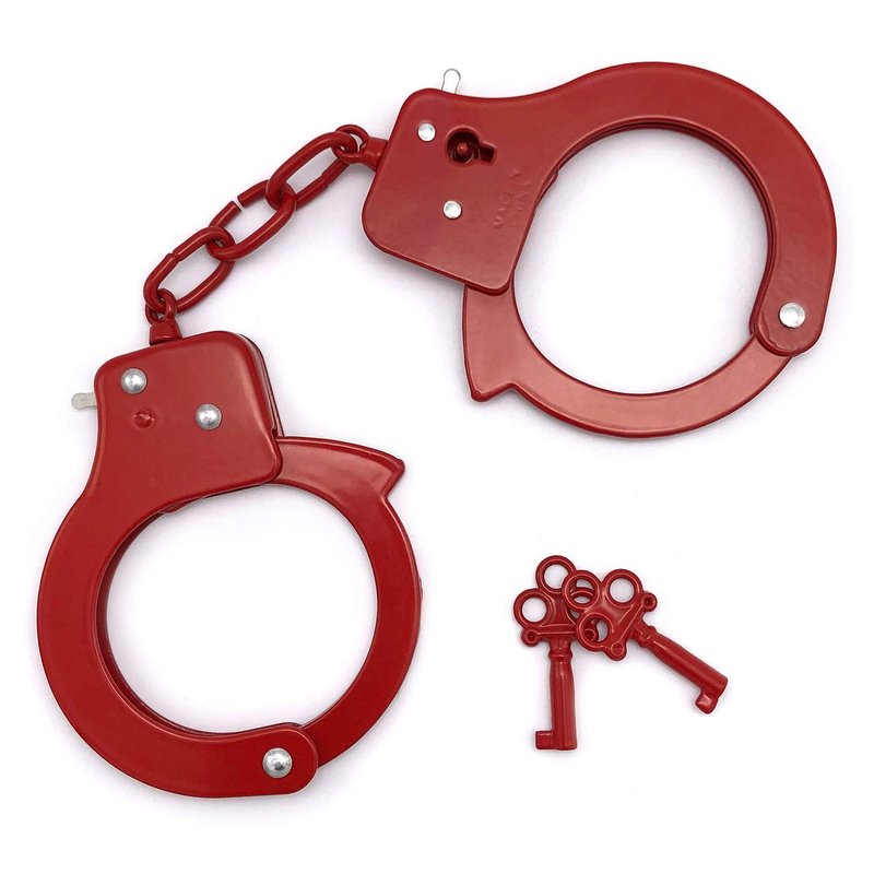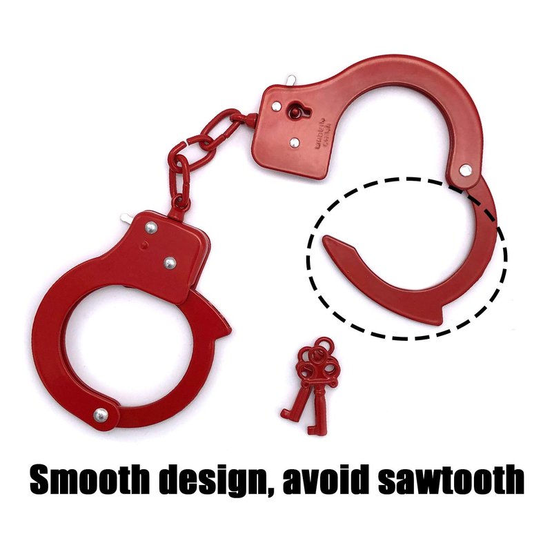 AUYYOSK Toy Metal Handcuffs with Key,Safety Party Supplies Accessory Pretend Play Hand Cuffs for Kids Children (Red)