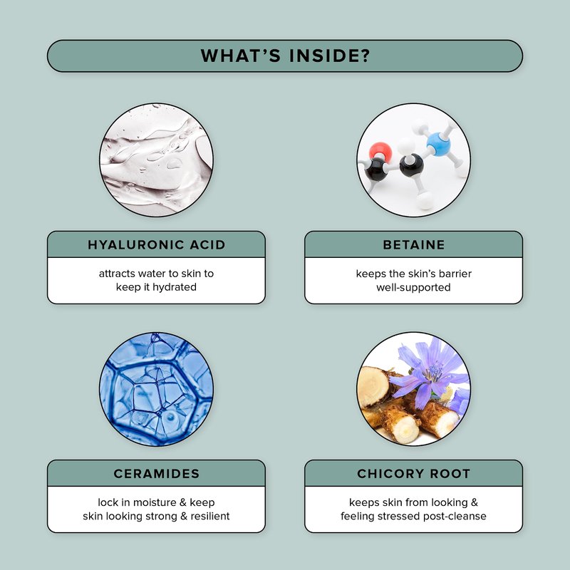 - Environmental Defense - The combination of kombucha, hyaluronic acid, ceramides, and chicory root in our foaming cleanser fortifies your skin's natural barrier against environmental stressors. This facial cleanser for women and men is like a shield for your skin, keeping it strong and resilient.