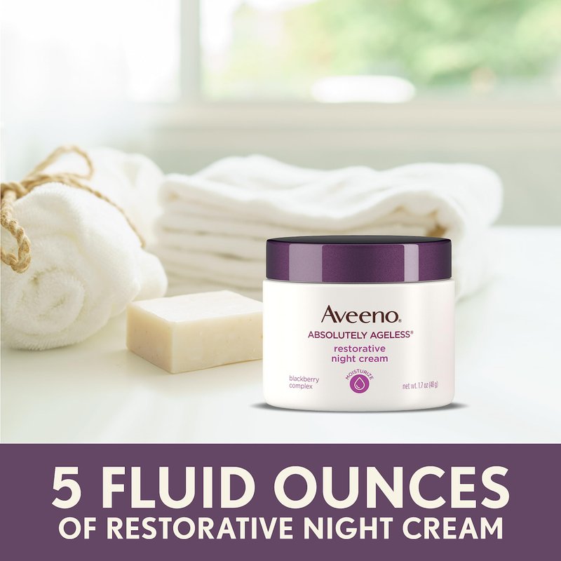 - 1.7-fluid ounce jar of Aveeno Absolutely Ageless Restorative Moisturizing Night Cream works overnight to moisturize and nourish skin