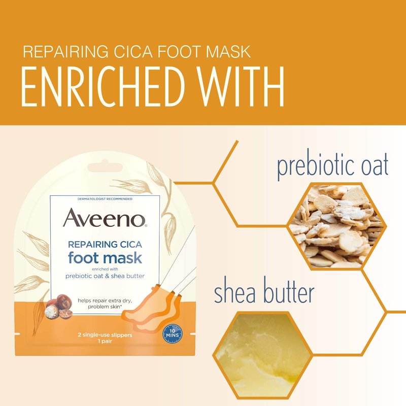Aveeno Repairing CICA Foot Mask & Hand Mask with Prebiotic Oat and Shea Butter, for Extra Dry Skin, 1 ea