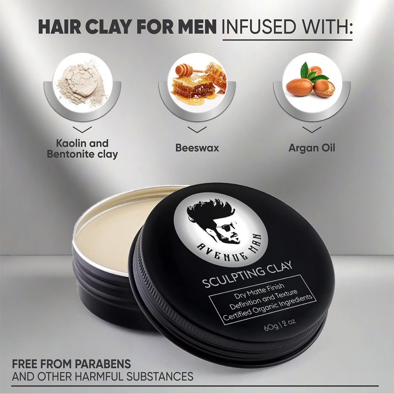 Avenue Man Hair Clay for Men - Matte Finish Sculpting Clay - Strong Hold, Maximum Definition and Textured Control - For All Hair Types - Infused with Beeswax, Kaolin Clay and Argan Oil - 3.0oz/90g