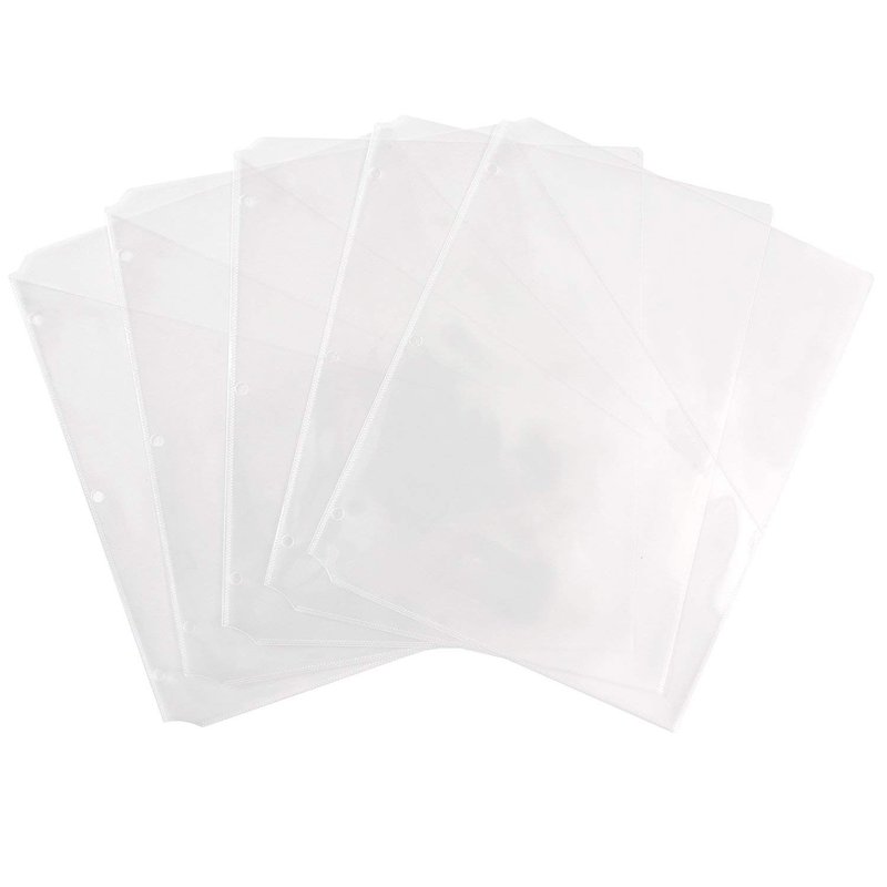 - Includes 5 durable clear binder pockets for easy organization and storage; each plastic binder sleeve has one pocket
