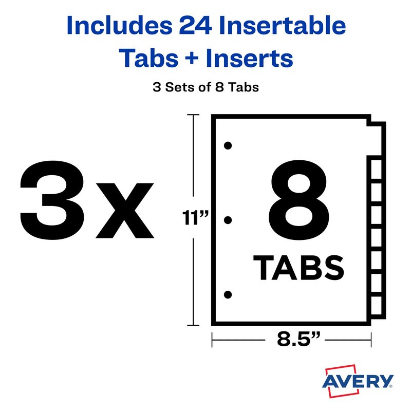 Avery Dividers for 3 Ring Binders, 8-Tab Binder Dividers, Plastic Binder Dividers, Insertable Big Tabs, Multicolor, 3 Sets (71901)
