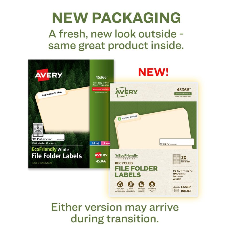 Avery EcoFriendly Recycled File Folder Labels, 2/3" x 3-7/16", White, Permanent Label Adhesive, 1,500 Printable Labels (45366)