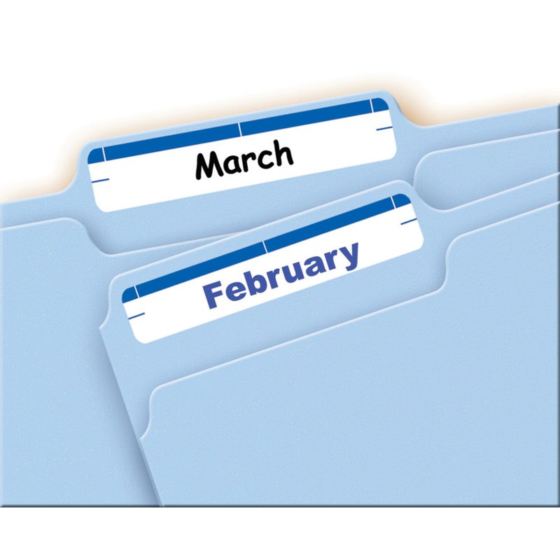 - Manage and identify files efficiently; an eye-catching dark blue bar over the white label surface allows for effective color coding and organizing labels for home, office, or school