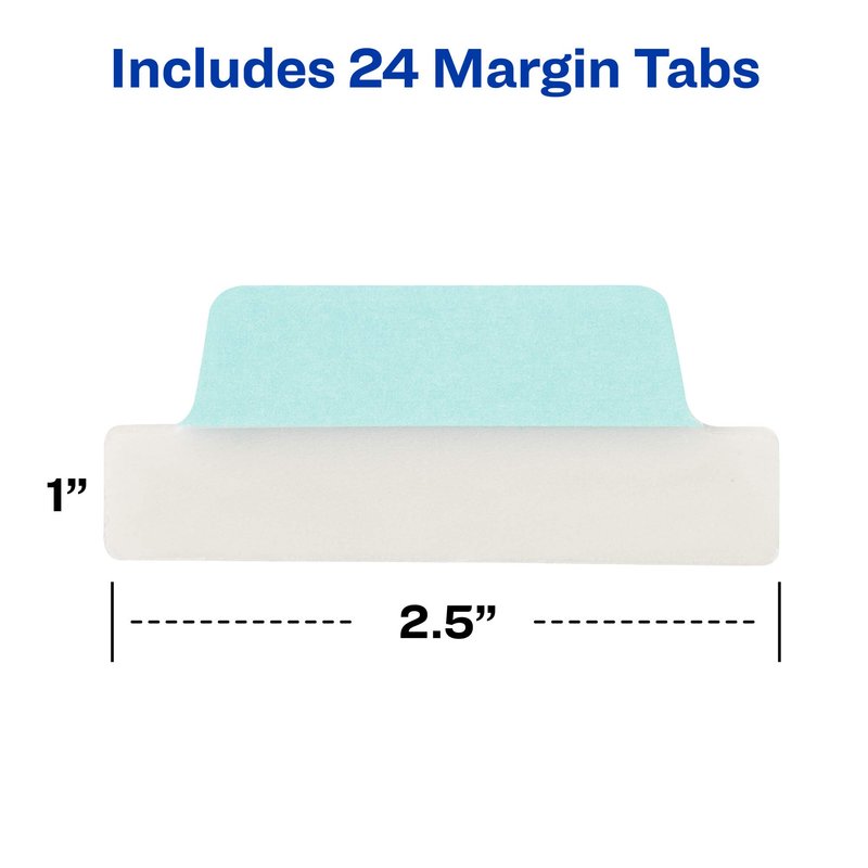 - Easily view underneath the clear index tabs body as you bookmark chapters, separate important documents, highlight notes and more