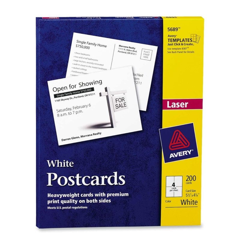 Avery Printable Postcards, 4.25" x 5.5", White, 200 Blank Postcards for Laser Printers (05689)