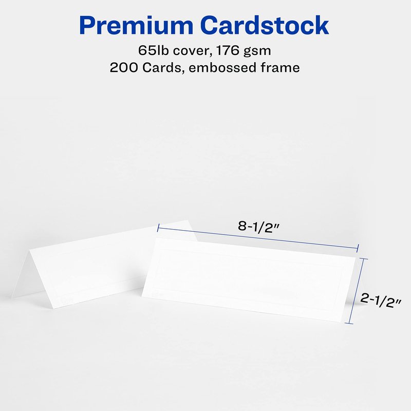 Avery Printable Tent Cards with Sure Feed Technology, 2.5" x 8.5", White with Embossed Border, 100 Blank Place Cards for Laser or Inkjet Printers (05305)