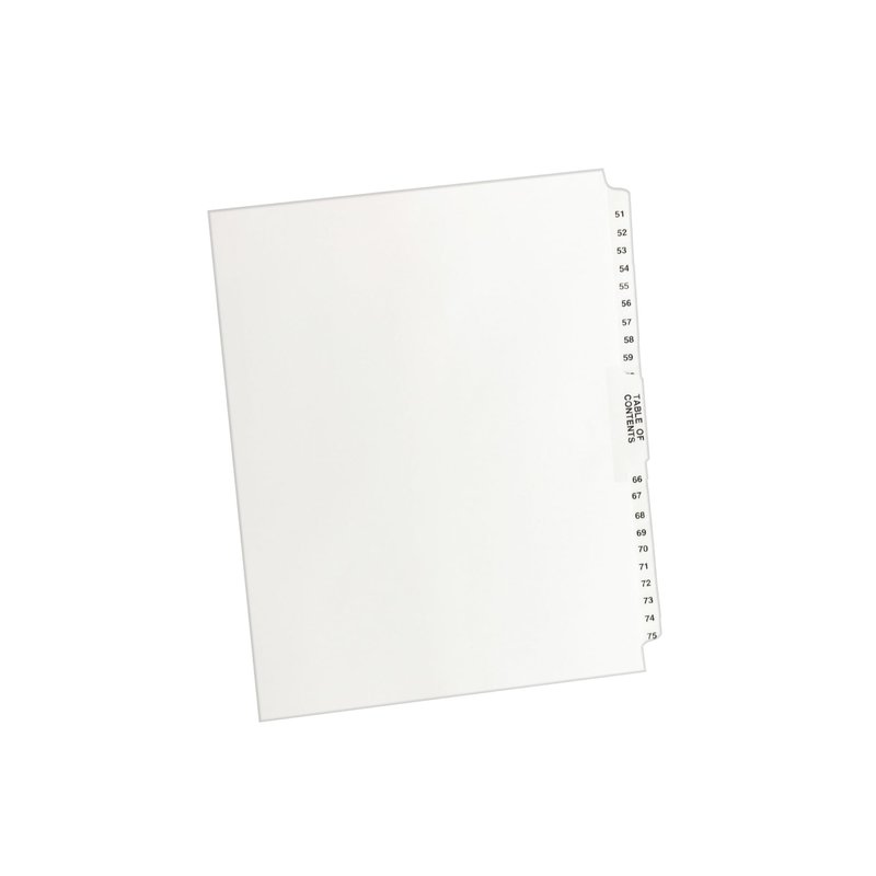 Avery Style Legal Exhibit Side Tab Dividers, 26 tabs, 51-75, Letter Size, White, Unpunched, one Set of 26 dividers (11396)