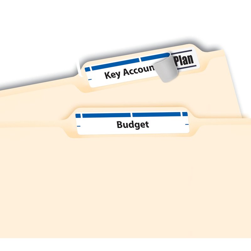 - Manage and identify files efficiently using the blue stripe over the white label surface for effective color coding and organizing labels for home, office, or school