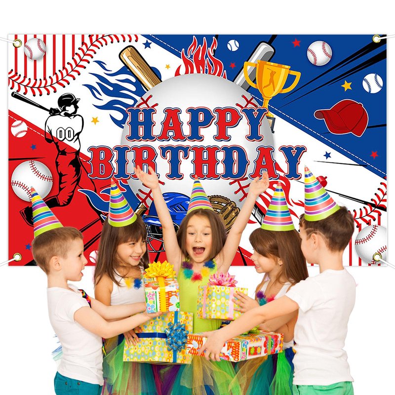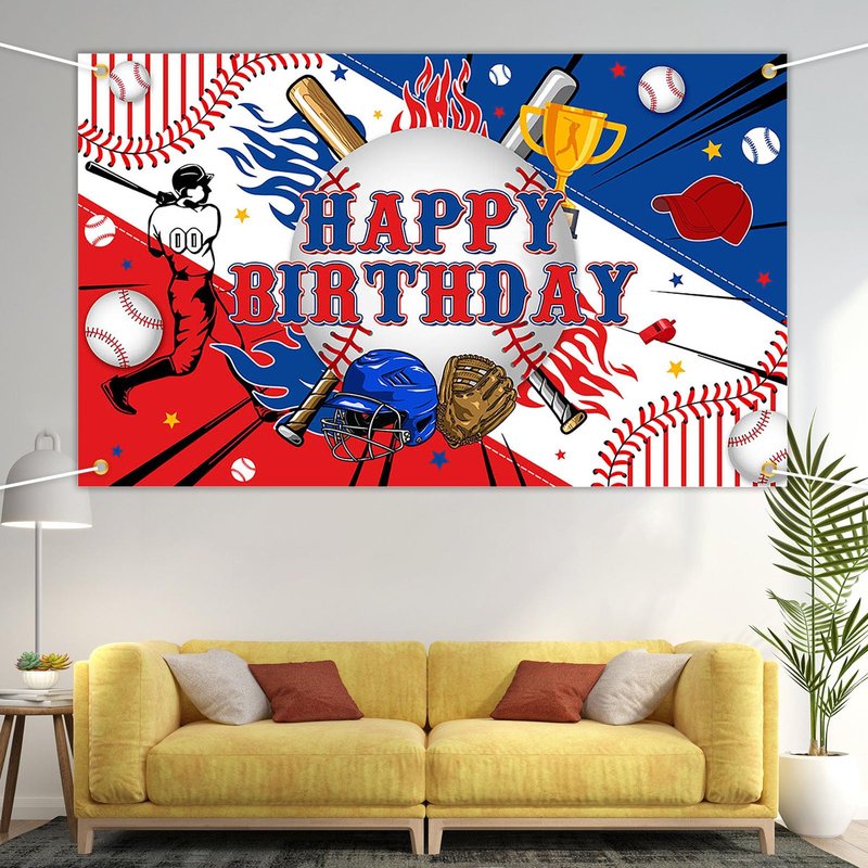 - CELEBRATE IN STYLE: This bright and colorful baseball happy birthday banner creates a festive backdrop for photographs; Made of high-quality polyester fabric that will maintain its vibrant colors even after repeated use, with string for easy hanging