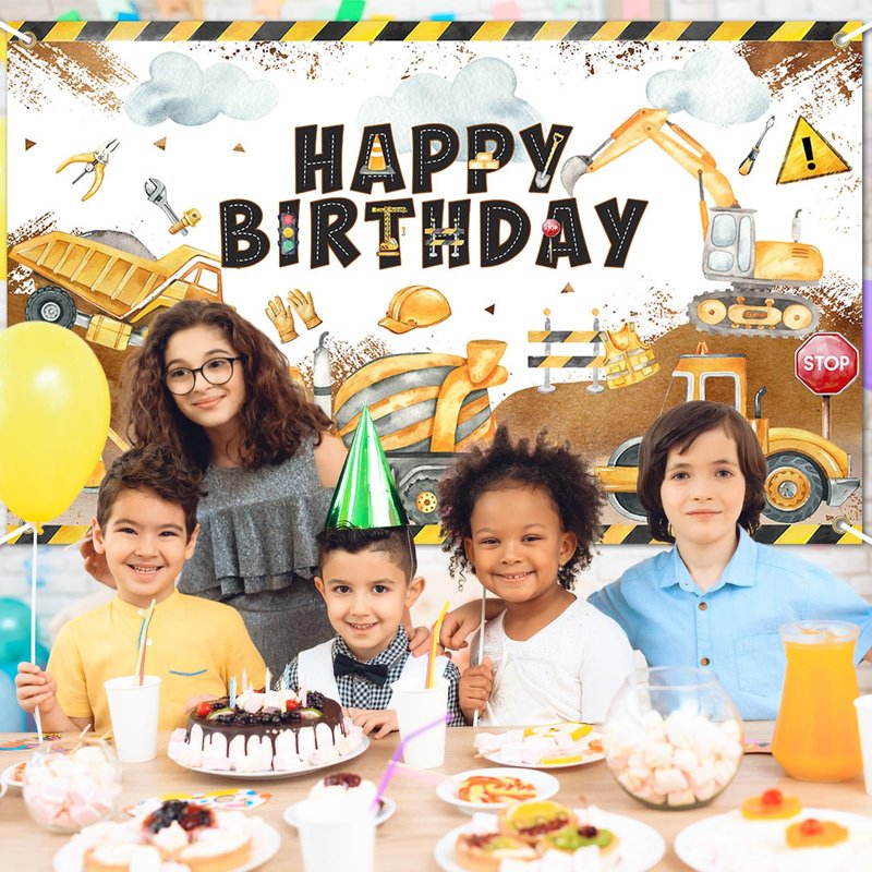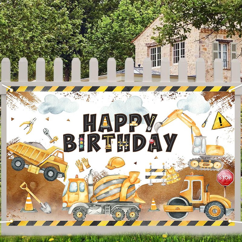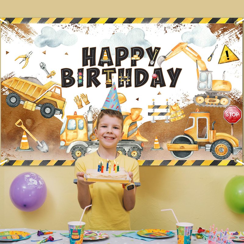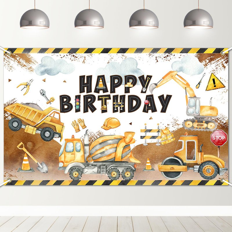 - CELEBRATE IN STYLE: This bright and colorful construction birthday backdrop banner creates a festive backdrop for photographs; Made of high-quality polyester fabric that will maintain its vibrant colors even after repeated use, with string for easy hanging