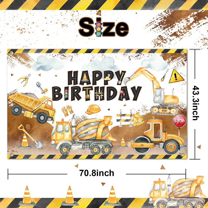 - PHOTO BACKDROP OR DECOR: 70.8 '' (Width) x 43.3 '' (Height), the construction birthday banner makes a vivid and festive backdrop for photos or a stunning decorative accent for indoor and outdoor parties