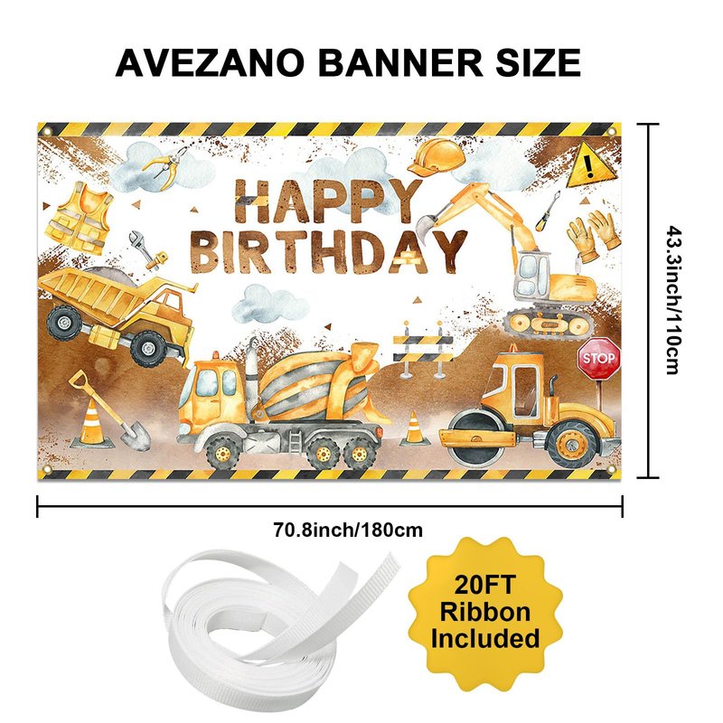 Avezano Construction Birthday Banner Excavator ...