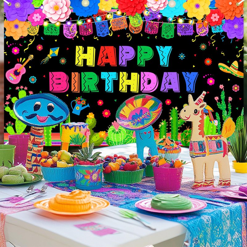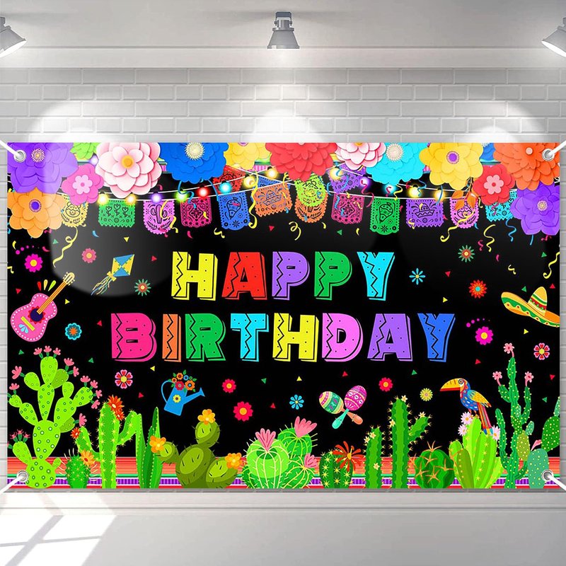 - CELEBRATE IN STYLE: This bright and colorful Mexican birthday party banner creates a festive backdrop for photographs; Made of high-quality polyester fabric that will maintain its vibrant colors even after repeated use, with string for easy hanging
