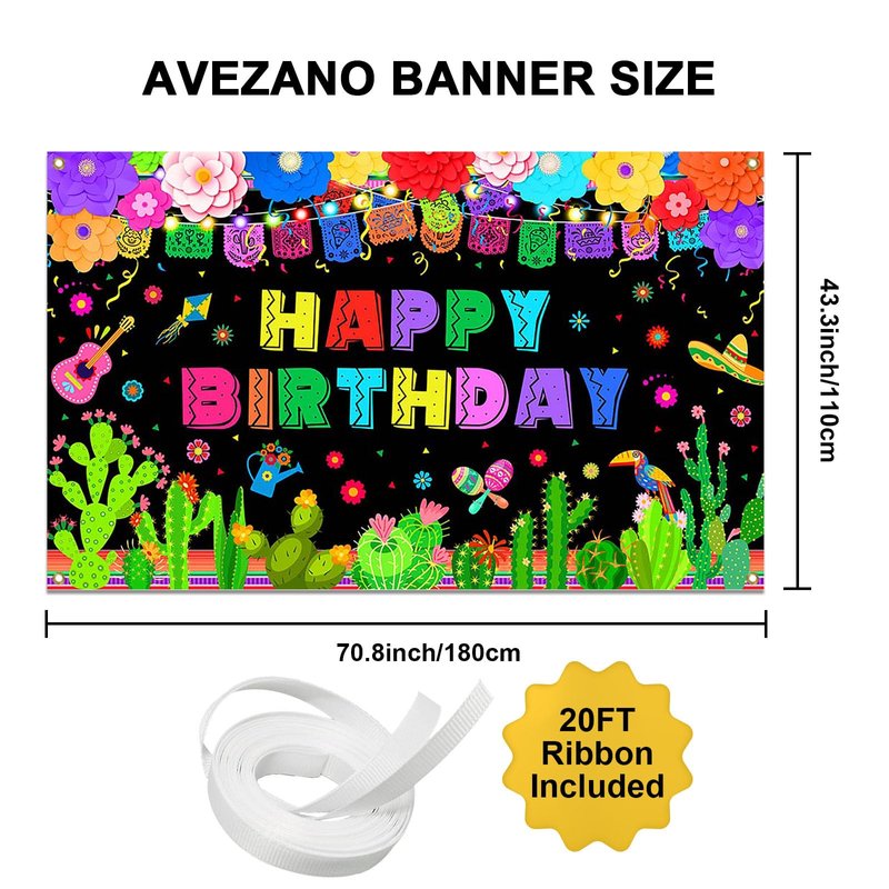 - PHOTO BACKDROP OR DECOR: 70.8 '' (Width) x 43.3 '' (Height), the Cinco de Mayo or birthday party banner makes a vivid and festive backdrop for photos or a stunning decorative accent for indoor and outdoor parties