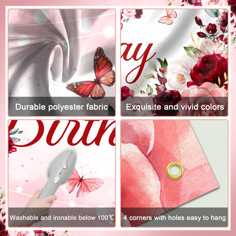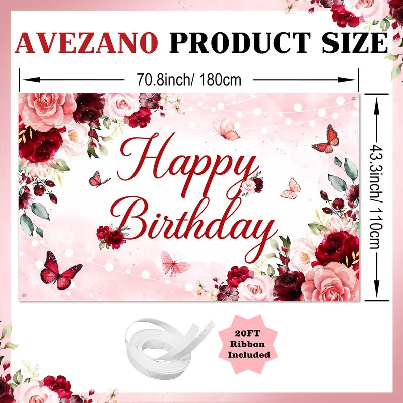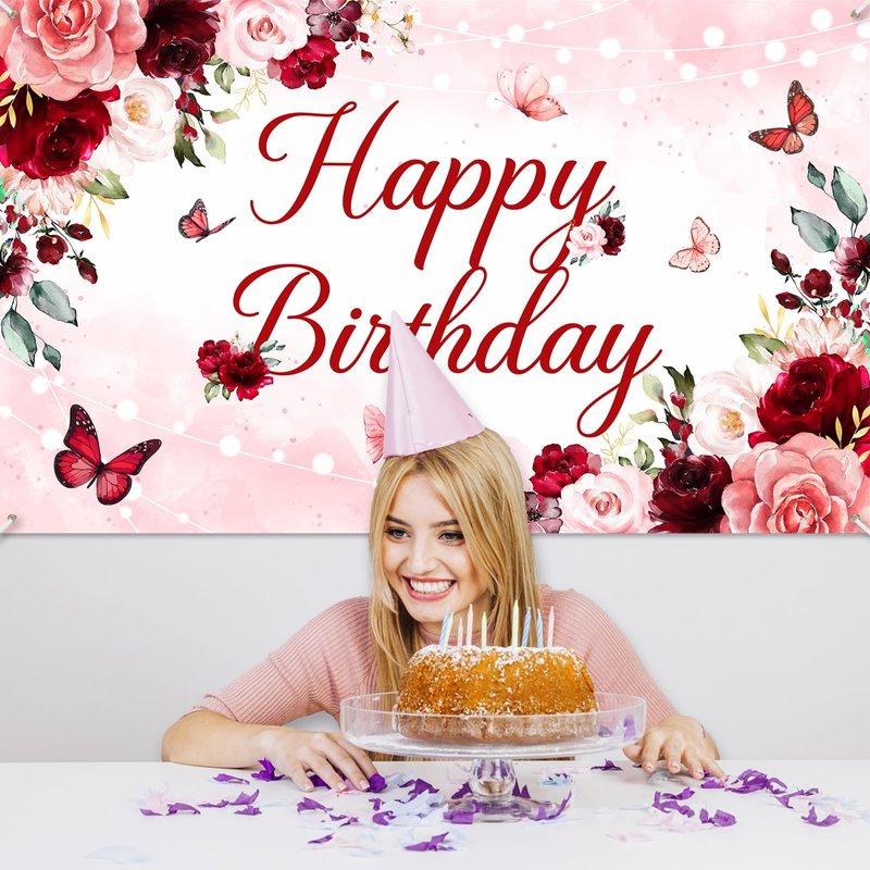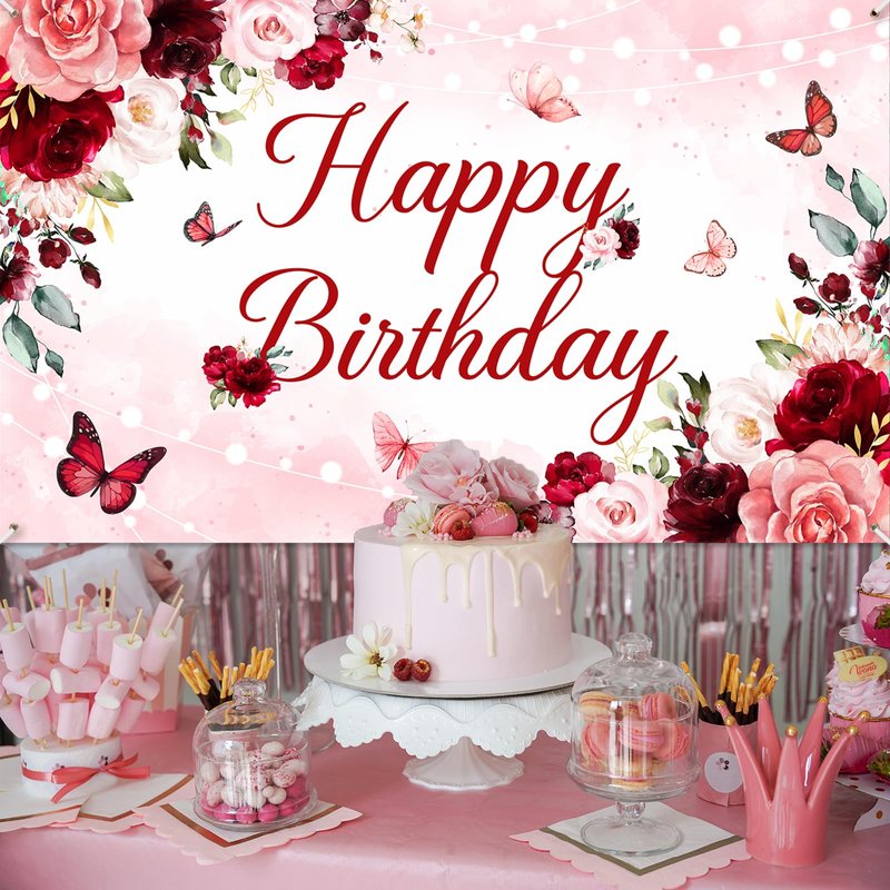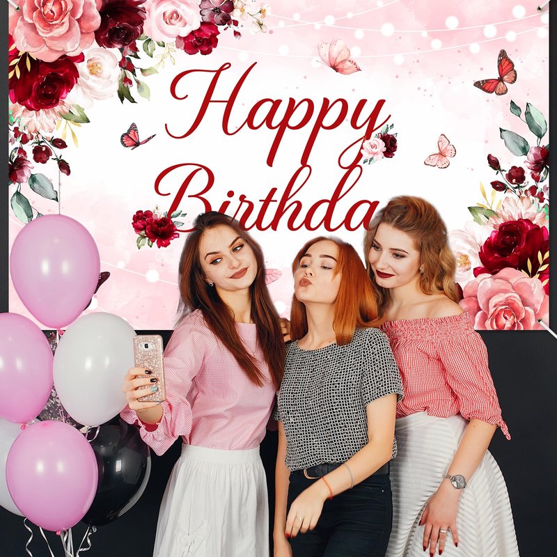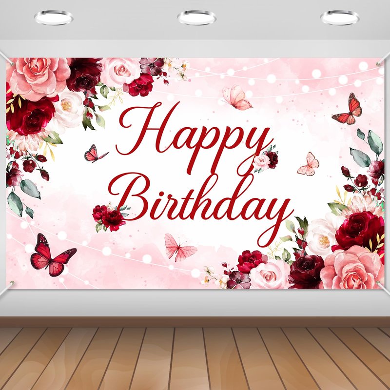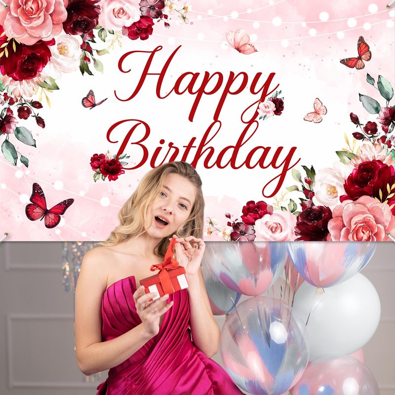 - PHOTO BACKDROP OR DECOR: 70.8 '' (Width) x 43.3 '' (Height), the pink and red burgundy birthday banner makes a vivid and festive backdrop for photos or a stunning decorative accent for indoor and outdoor parties