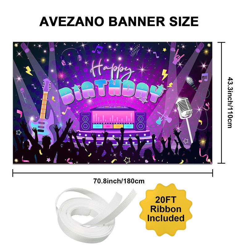 - Easy to Assemble: The music party background comes with ribbons; Just put it through the grommet at each corner and hang done, which can save time at party decoration; Suitable for indoor or outdoor walls, yard, home, bedroom, playground, garage