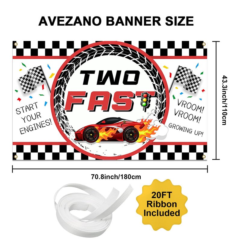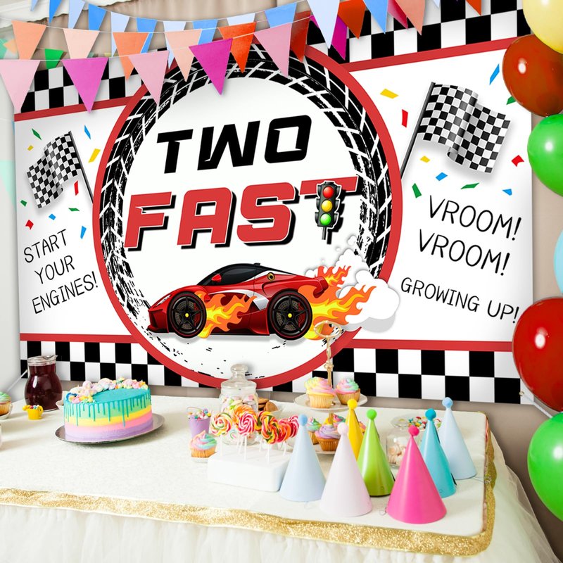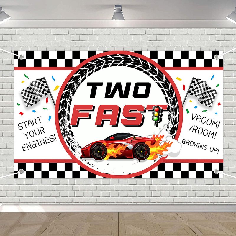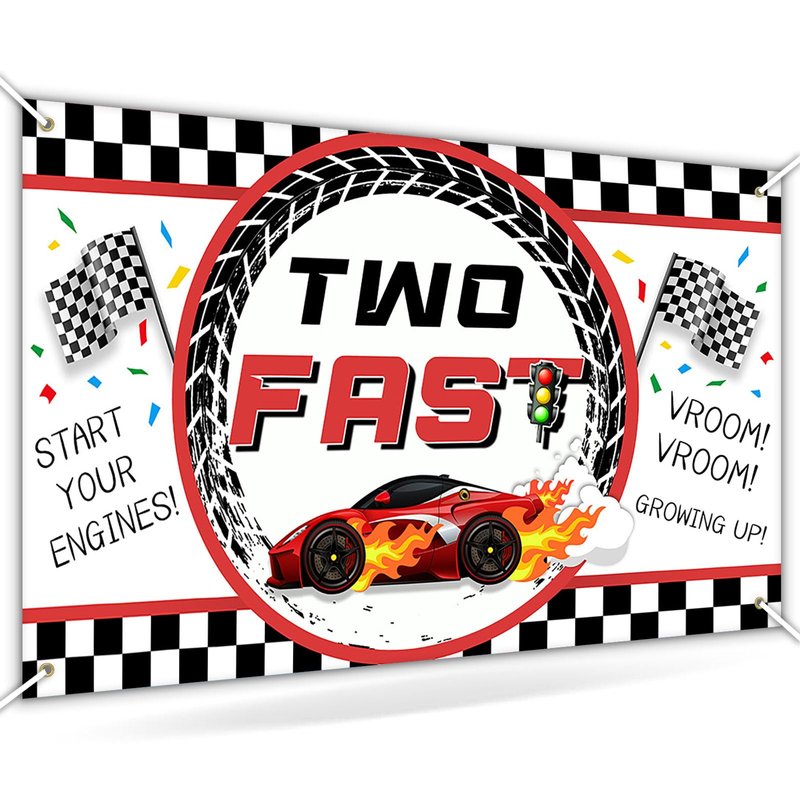- CELEBRATE IN STYLE: This bright and colorful two fast birthday banner creates a festive backdrop for photographs; Made of high-quality polyester fabric that will maintain its vibrant colors even after repeated use, with string for easy hanging
