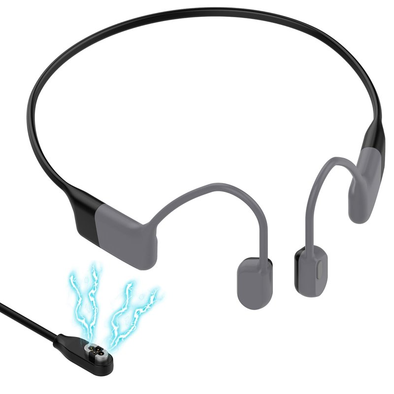 - A charging cable compatible with Shokz OpenSwim Pro earphones helps secure the charger in the appropriate charging position.