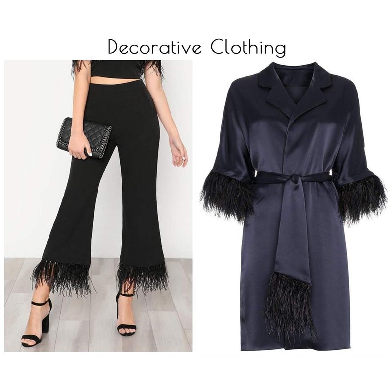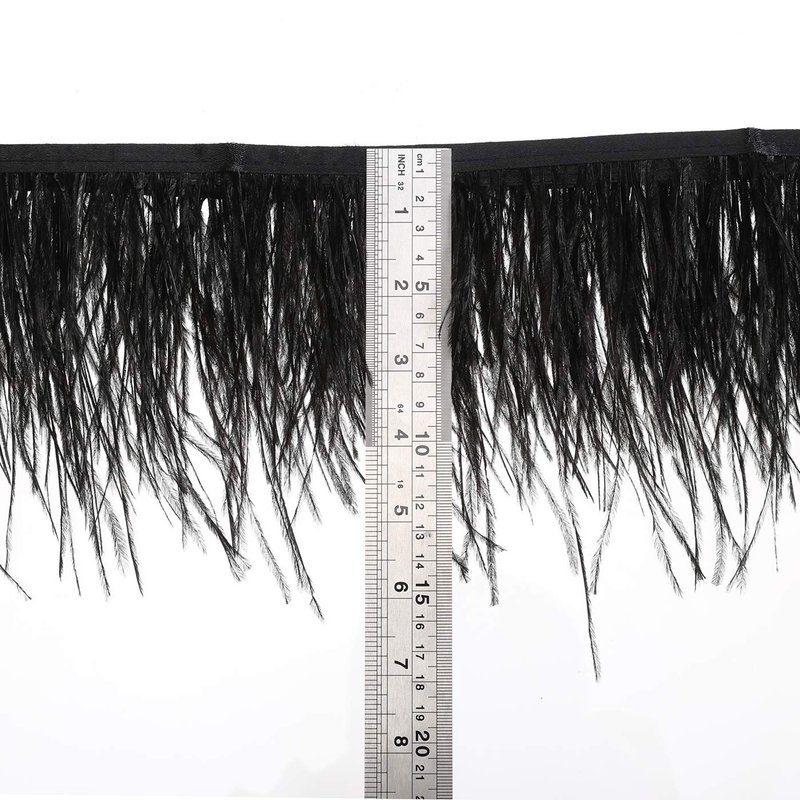 - [Decorative Feather Fringe]: These handmade ostrich feather fringes are sewn onto satin trim to make your crafting and designing tasks easy and hassle-free. Either glue the trim on your vases, cake stands, candles, invites, handicrafts etc. for giving them a fanciful touch, or sew on your dresses, costumes, and masks for that mystic effect.