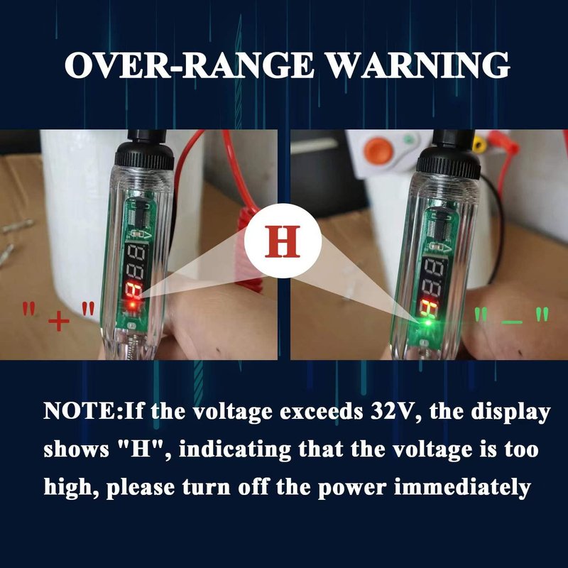 2.6-32V testing range, ideal for car, truck, and various vehicles' electrical circuits voltage testing, also for automotive battery, battery charging systems, ignition systems, which is a must have tool for any automotive engineer, electronic engineer or circuits DIY.