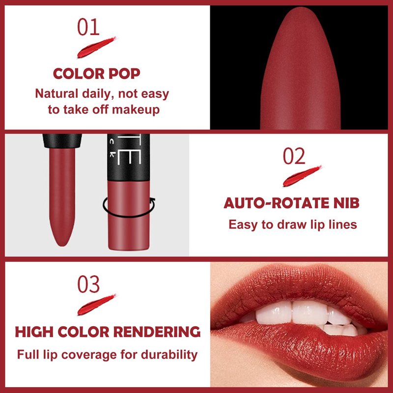 - 【3 Color Crayon Matte Lipstick Set】This matte lipstick set is rich in color and highly pigmented, giving the lips a matte velvety effect, creating a bold and sexy lip makeup. Experience a refined and elegant everyday look with 3 different matte lipsticks.