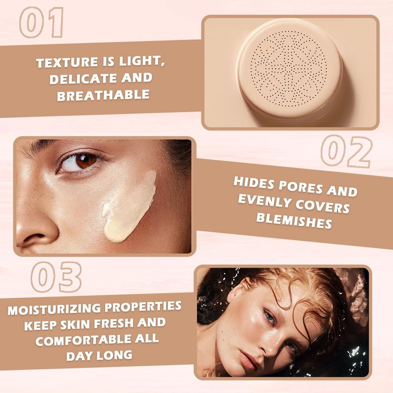- 【Easy To Use】Press and dip the mushroom head sponge into the foundation, then apply it evenly on the face, pat from the inside out to modify the contours. Perfectly matched with other makeup to meet daily base makeup needs.