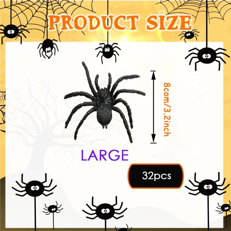 - Package includes 32pcs black plastic spider,large size plastic spider.