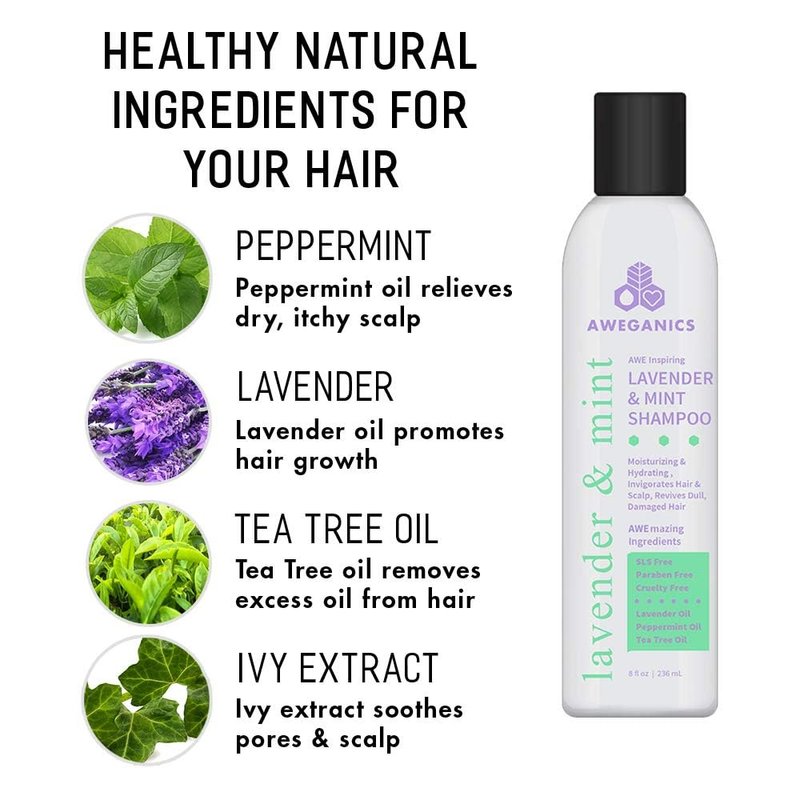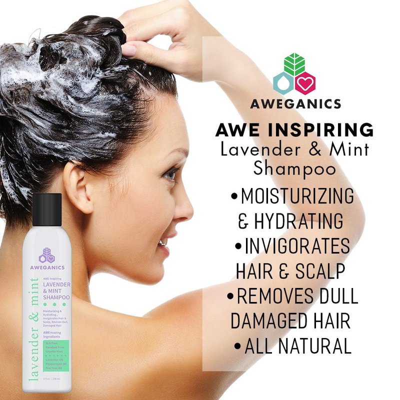 AWEGANICS Lavender Mint Hair Shampoo - Inspiring Natural Aromatherapy Invigorating Purple Shampoos - Hydrating, Cleansing, Moisturizing - Paraben-Free, Cruelty-Free, Peppermint, Tea Tree