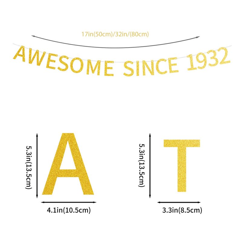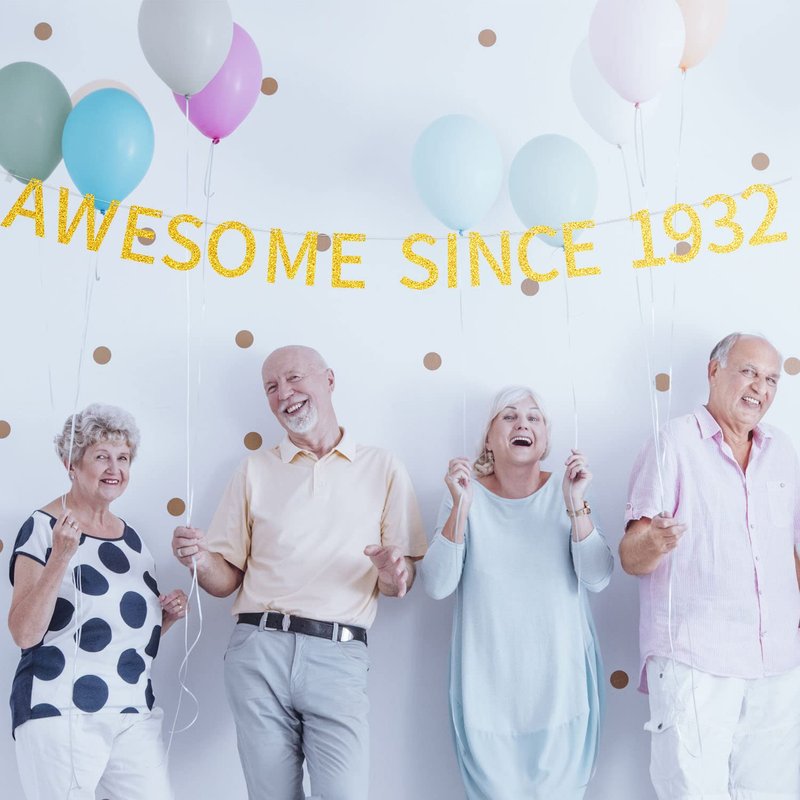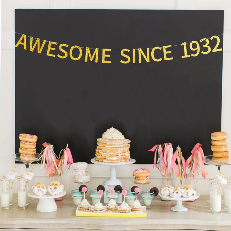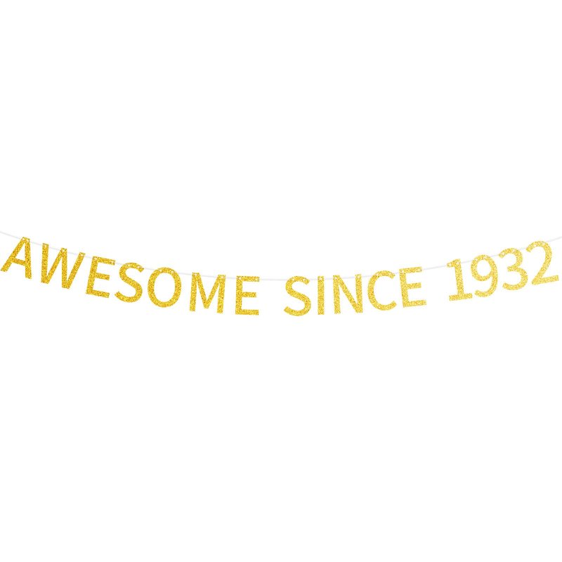 Awesome Since 1932 Banner Pre-strung Happy 92nd Birthday Banner Gold Glittery 92 Ninety Two Years Old Birthday Party Decorations for Men Women