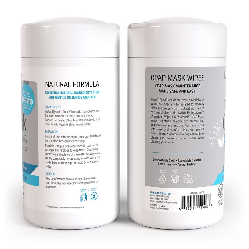 - Free of stuff: AWOW cpap cleaning wipes are alcohol-free, latex-free and 100% natural cotton wipes. Breathing thru a clean mask without harsh chemical residue provides you with peace of mind.