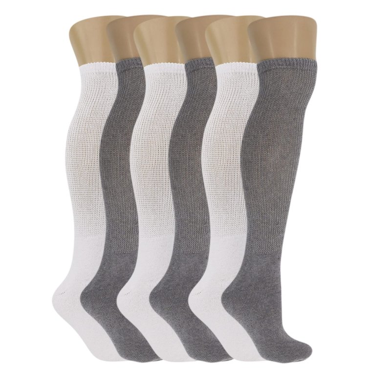 - Sock Size: 10-13. Shoe Size:6-12. Color: White & Gray. Length: Knee High.