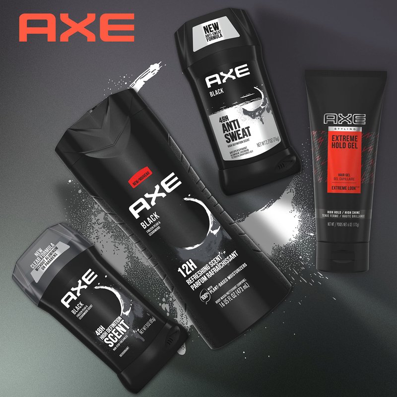 - Complemented by a full range of AXE hair styling gel and grooming products