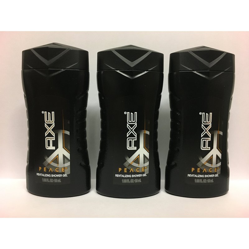 AXE Mens Peace Revitalizing Shower Gel 1.6oz. Pack of 3 Trial Size Heading Purpose Skin Care Manufacturer Unilever Active Ingredients Water (Aqua); Sodium Laureth Sulfate; Sodium Chloride; Cocamide MEA; Fragrance; PPG-9; Citric Acid; Tetrasodium EDTA; Methylchloroisothiazolinone; Methylisothiazolinone; Blue 1 (Cl 42090); Red 33 (Cl 17200) Directions Squeeze out gel. Lather on body. Rinse off. Be clean. Smell great. Uses Ultra lather and addictive fragrance to give you a super-charged clean. A unique fragrance so addictive it sets you up to make love, not war.