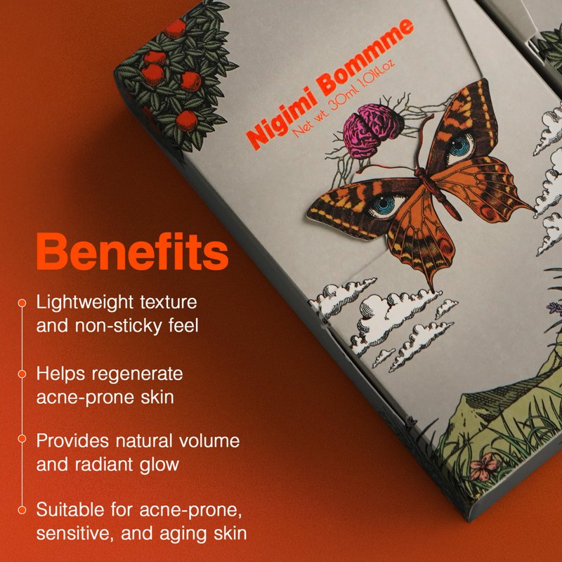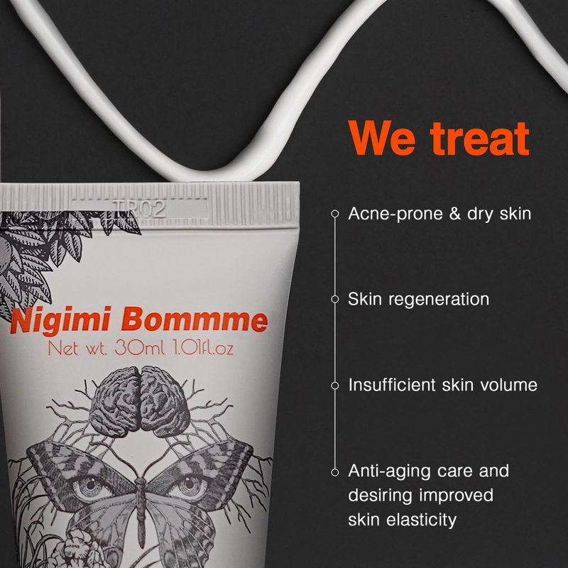 Achieve a visibly radiant and youthful complexion every day with Nigimi Bommme Cream — expertly formulated to enhance skin radiance, volume, and firmness! Radiant, Youthful Skin Every Morning Wake up to a rejuvenated, glowing complexion with our skin-tightening formula, designed to restore radiance and youthful volume daily. Gentle Hydration for Delicate, Acne-Prone Skin Ideal for sensitive skin, this centella-infused cream provides balanced hydration without clogging pores, leaving your skin calm and radiant. Lightweight Texture, Deep Hydration Our centella cream feels light on the skin while delivering intense moisture, leaving your face fresh and hydrated without any greasy feeling. Effortless Daily Routine for a Lasting Glow Use our skin-tightening cream every morning and night for an instant boost of hydration and gradual radiance, unveiling softer, more luminous skin. Enhanced Overnight Glow and Gentle Exfoliation For maximum radiance, combine with Accentua Lutiner overnight to gently exfoliate dead skin cells, revealing a fresh, glowing face by morning. Embrace the glow! Add Nigimi Bommme Cream to your skincare routine and start every day with a youthful, luminous complexion.