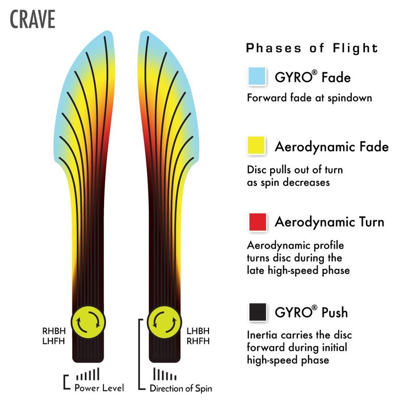 - 21 MM CLASS - The defining characteristic of the Crave is its straight flight and long forward fade. Speed 6.5 | Glide 5 | Turn -1 | Fade 1.