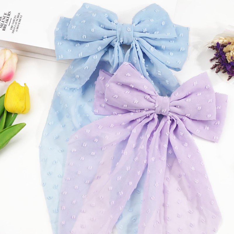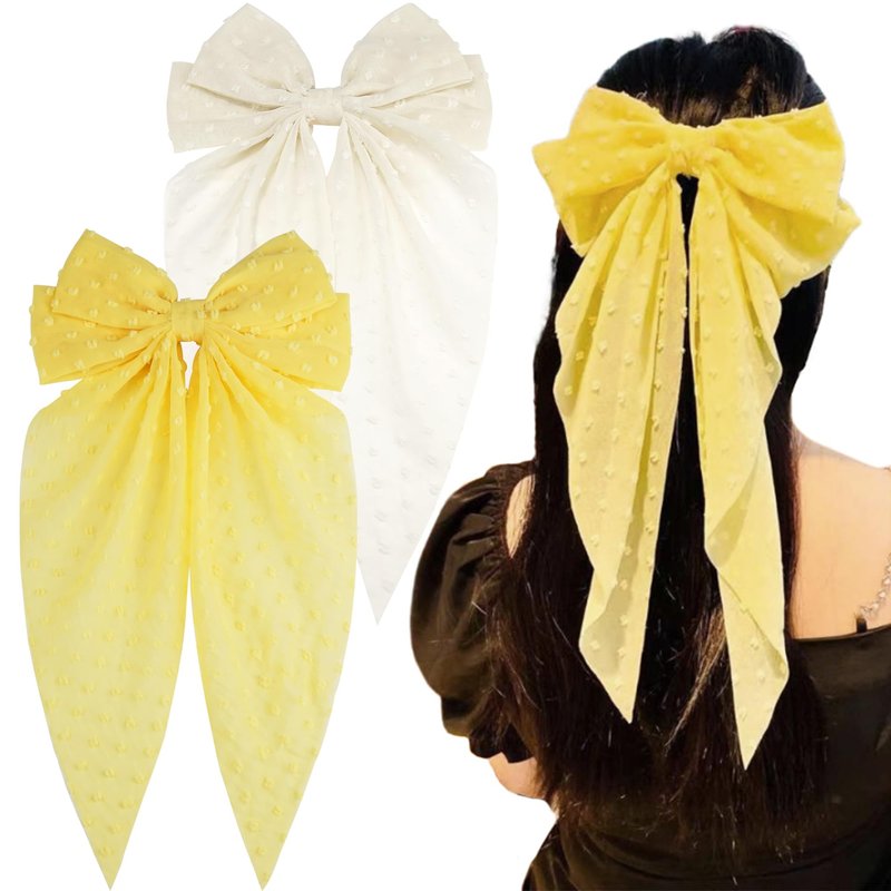 - Handmade big hair bow with long tail and comfortable hair clasp will create your best stylish and romantic look! They're super elegance and the clip is big enough to use on adult hair/hairstyles. They hold even fine hair securely and without slipping or sliding.
