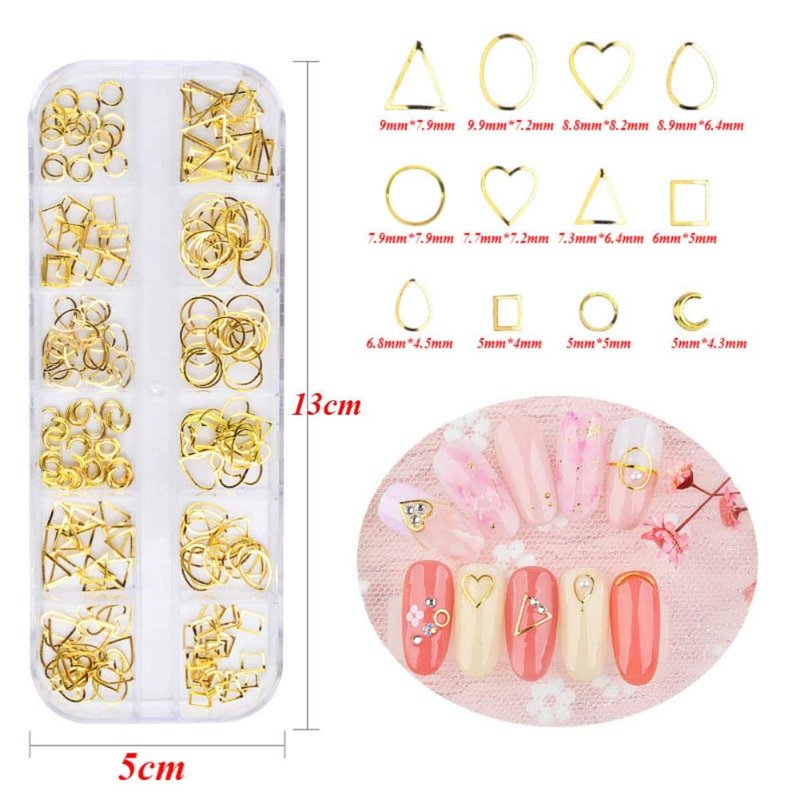 1 Boxed 12 Grids Geometric Circle Oval Heart Triangle Moon Square Shaped Nail Rivets