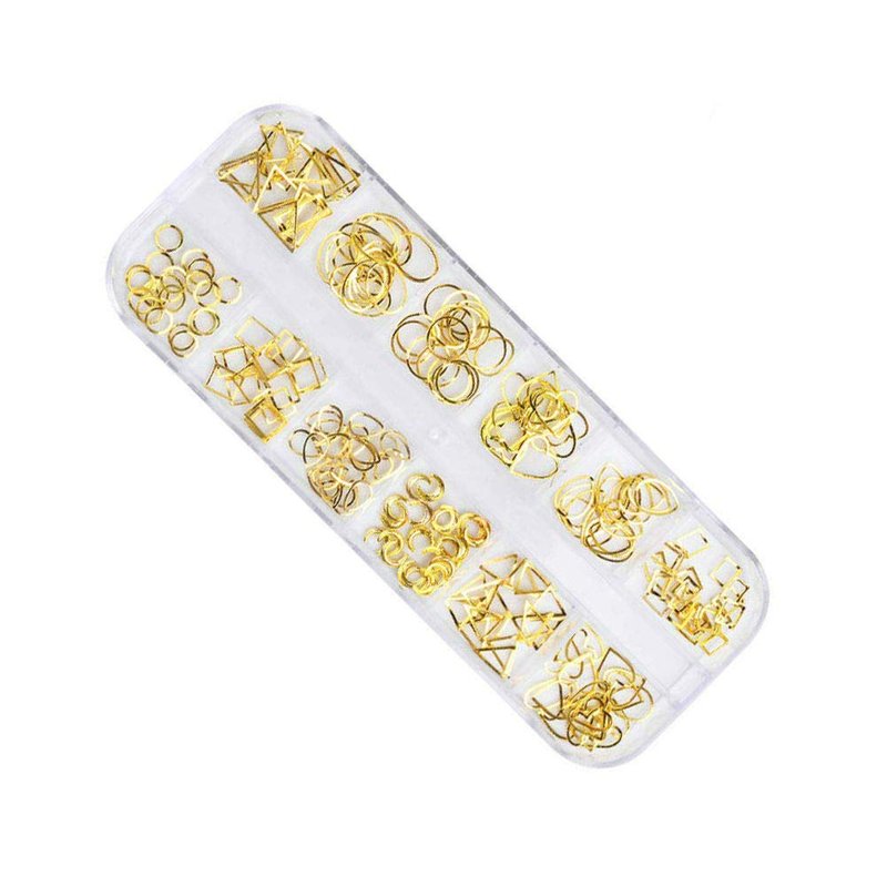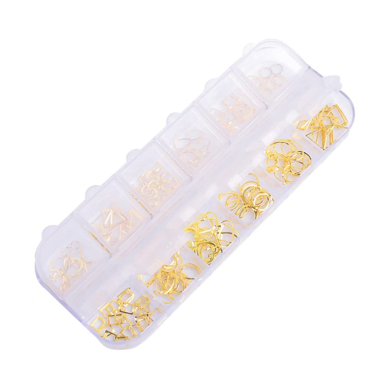 Aysekone 1 Boxed 12 Grids Gold 3D Alloy Metal Nail Rivets Charms Nail Studs Nail Ornament Geometric Circle Oval Heart Triangle Moon Square Shaped Nail Art Decorations