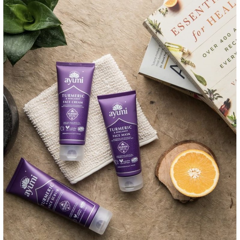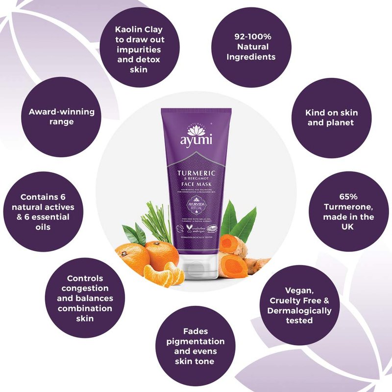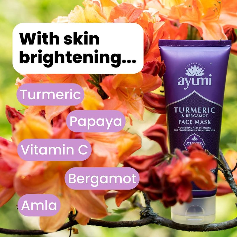 - TURMERIC & BERGAMOT FACE MASK: This Face Mask is your go-to solution for combating blemished skin and achieving a radiant complexion. Infused with powerful turmeric root extract to fight acne and Vitamin C and Papaya extract to target dark spots and hyperpigmentation. Our nourishing formula is enhanced with glycerin to hydrate and soften dry skin, making each application a rejuvenating experience. Use alongside Ayumi Turmeric & Vitamin C Face Wash for best results.