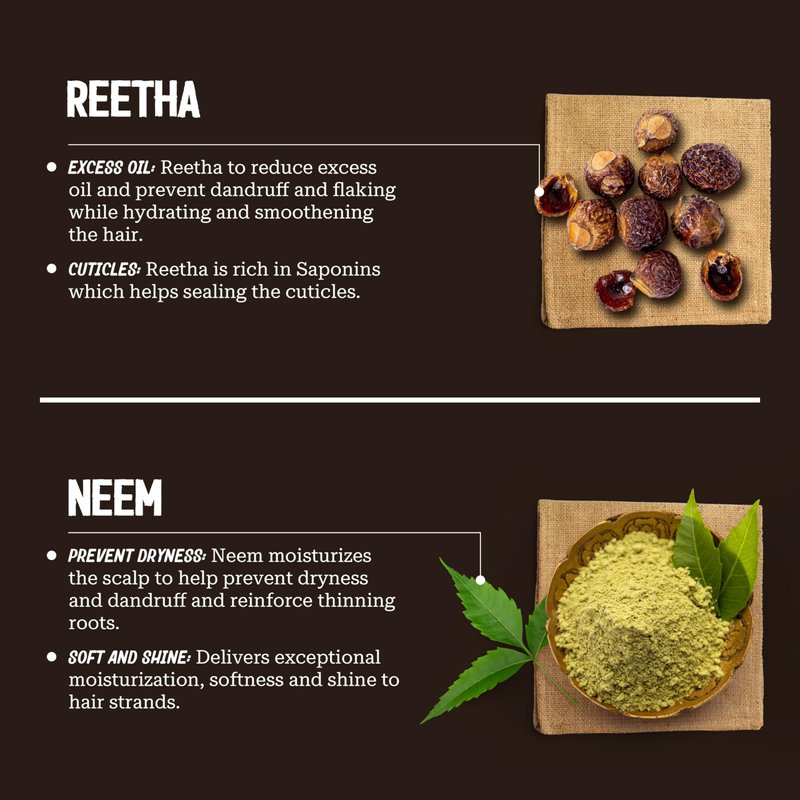 - AYURVEDIC EXCELLENCE: Our conditioner harnesses the rich properties of Neem, abundant in Vitamin E, and Reetha, which boasts gentle, natural surfactants that cleanse and revitalize your hair.