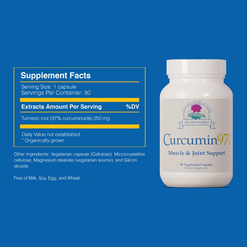 Ayush Herbs Curcumin 97%, Herbal Turmeric Supplement for Whole-Body Support, 90 Capsules