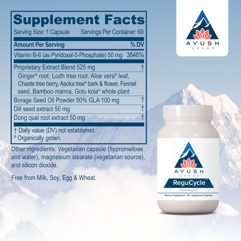 Ayush Herbs Regu-Cycle, Female Reproductive Health and Hormonal Support, Ayurvedic Herbal Supplement, 60 Vegetarian Capsules
