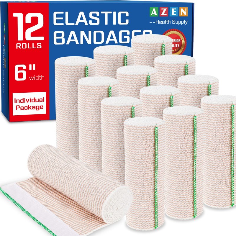 AZEN Premium 12 Pack Elastic Bandage Wrap 6 Inch, Compression Wrap Bandage for Legs, Ankle, Knee, Tummy, Body, Latex-Free, Lymphedema Wraps for Legs