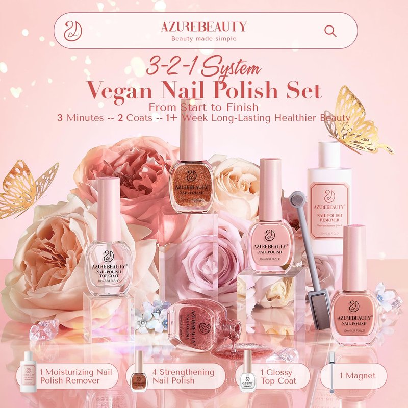 - ❤️Upgraded Health Formula & Low Odor: AZUREBEAUTY nail polish kit adds a nail strengthener for a firmer manicure. High purity color paste color uniformity, no need to brush repeatedly color. Added nutrients like vitamin E, healthy, low odor, and no nail-damaging irritating ingredients or adhesives to protect your nails.